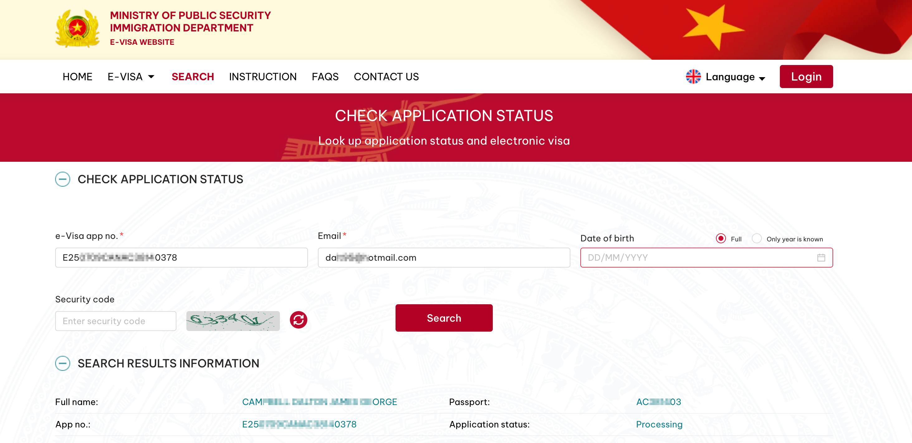 3 - Click “Search” (or “Tra cứu”): The system will display the current status of your application. Possible results include: