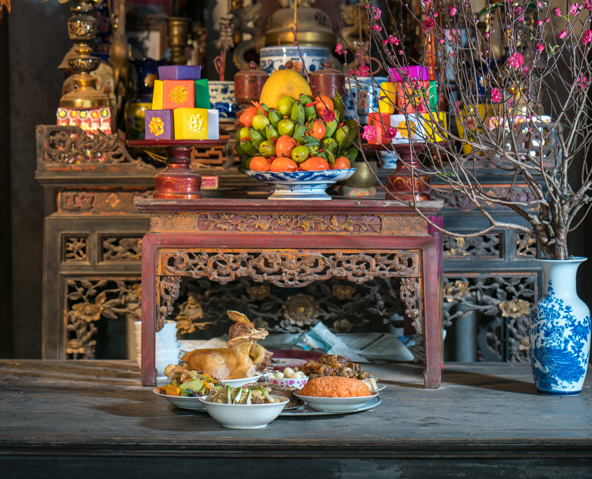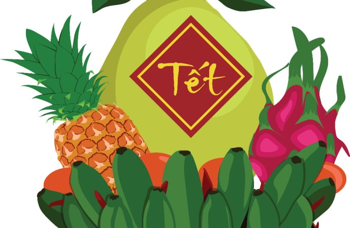 Five-fruit tray on an ancestor's altar is a way to show respect to ancestors as well as pray for luck, happiness, health, and wealth in the new year. Depending on each region, each family will choose 5 different fruits and arrange them nicely on a tray, and put them on the altar during Tet.