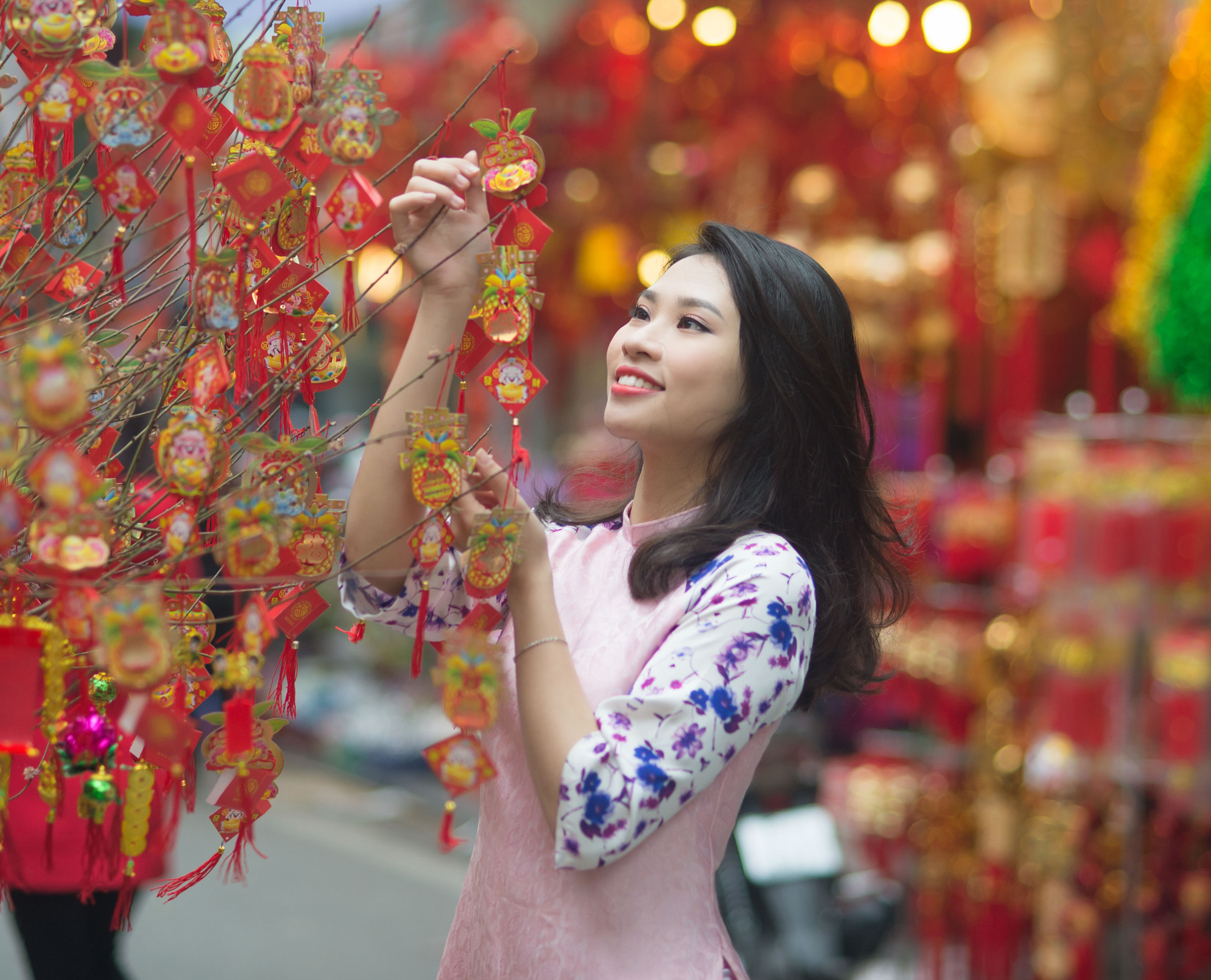 Kumquat, peach blossom, or apricot blossom trees are the symbol of the Vietnamese New Year. Every house will buy at least one tree to place in the living room or in the yard in front of the house to announce that Tet is coming to their house. Moreover, many people choose fresh flower vases as another way to make their house solemn and refreshing.